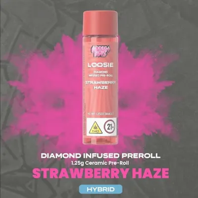 Introducing Strawberry Haze Loosies — the perfect blend of sweet and uplifting vibes in a single infused pre roll. Each Loosie is meticulously crafted with 1.25 grams of premium flower, infused with diamonds, and coated with Bodega Boyz THCA diamonds, delivering an explosion of terpene flavor profiles with every puff. Indulge in the juicy sweetness of ripe strawberries, elevated by a touch of haze that leaves you feeling energized and inspired. Whether you’re sparking up solo or sharing with friends, Strawberry Haze Loosies elevate your smoking experience to new heights. Reusable ceramic tips make this experience hit different.
