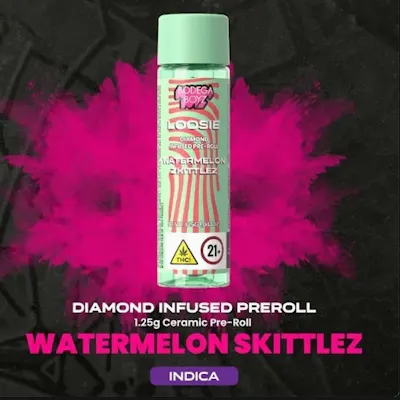 Dive into a burst of refreshing sweetness with Watermelon Z Loosies — the ultimate treat for your taste buds. Each Loosie is meticulously crafted with 1.25 grams of premium flower, infused with diamonds, and coated with Bodega Boyz THCA diamonds, ensuring a next level experience with every inhale. Experience the juicy essence of ripe watermelon, perfectly complemented by the playful fusion of fruity Zkittlez flavors. With its tantalizing terpene profile, Watermelon Z Loosies transport you to a summer paradise with every puff. Reusable ceramic tips make this experience hit different.