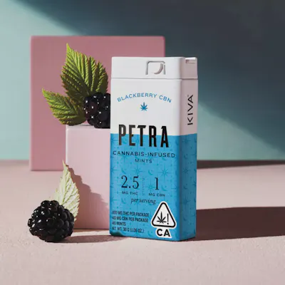 Petra Blackberry CBN mints bring a darker, smoother flavor lane to the brand’s microdosed lineup, pairing fresh blackberry with soft vanilla in a discreet mint format. The sugar-free, plant-based build keeps the experience clean and portable, making these easy to stash, carry, and work into a quieter evening routine. Expect a mellow, settled vibe that feels tailored for winding down rather than revving anything up, with polished flavor that stays more refined than candy-shelf sweet. For shoppers who like their edibles subtle, pocket-friendly, and just a little sleepover-coded, this one keeps things calm without getting boring. Consume responsibly. 21+ only.