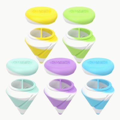 The Spinner Jar is an accessory that looks incredibly simple and not very exciting, but it actually has more function than one might expect. Store up to a few grams of concentrates in the jar compartment. Simply lift off the interlocking lid to access the contents. This inner chamber can also be used as a dab dish. Load in the concentrates and use a dab straw or nectar collector to directly dab out of the Spinner. The innovation really comes to light when the Spinner Jar is flipped upside down. This reveals the special angled grooves around the bottom that allow this container to double as a Spinner carb cap. Spinner carb caps use directed airflow channels to create a vortex inside the banger that whips up every last drop of oil, leaving no wasted product behind. This vortex is also what makes terp pearls spin in a banger, further ensuring all the wax is dabbed. This is a super compact POP display that includes 45 individual pieces. There are 5 different tie-dye color mixes to choose from. SPINNER JAR | The Spinner Jar is an innovative accessory that has multiple functions for concentrates. The most obvious function is storing wax concentrates securely in an airtight chamber that keeps contents fresh. SILICONE | This is an entirely silicone piece that is made of high quality materials and is extremely heat-resistant. This is safe to use with a hot nail or banger. CARB CAP | The Spinner Jar is also a spinner carb cap. There are grooves along the underside that create a vortex inside a banger when the Spinner is placed on top. This makes sure all the wax is vaporized, and helps terp pearls spin. DAB DISH | In addition to using the Spinner Jar for storage and as a carb cap, it can also be used as a dab dish. Load in a dab, and use the Spinner to dab out of with a nectar collector.
