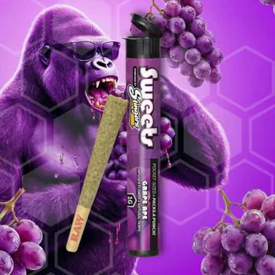 Liquid Diamonds X Natural Terps X Flower Sweet, smooth, and laid back — this 1G infused pre-roll blends Liquid Diamonds and Natural Terpenes for deep relaxation and rich grape flavor. Lineage: Mendocino Purps x Skunk x Afghani Rich grape flavor and mellow body effects define this timeless classic. Grape Ape fuses full flower with Liquid Diamonds and Natural Terpenes for a smooth, flavorful burn that melts away the day. Sweets by Stingers is the all-new infused flower pre-roll blended with naturally derived terpenes, delivering vibrant flavor with every inhale. Each 1G pre-roll offers a smooth smoke, flavor-forward impact, and consistently high potency for an elevated and reliable experience.