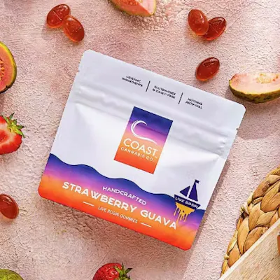 One of the purest forms of cannabis concentrate, live rosin. The natural extraction process allows each strain's terpenes and aromas to thrive. No artificial coloring, flavors or solvents. With a burst of tropical flavor, the taste will be as smooth as the high. 5mg THC per piece 100mg THC per bag Coast gummies are made with only organic and all-natural ingredients paired with in-house made cannabis oil to ensure a guilt-free indulgence that is also gluten free! No high fructose corn syrup, artificial colors or flavors. Ingredients: Grass-fed Gelatin, Organic Tapioca Syrup, Organic Sugar, Organic Fruit Juices, Organic Coloring, Organic Flavoring, Organic MCT Oil, Organic Lecithin, Live Rosin Cannabis Oil Average Starting Dose: 5mg or less Onset: 20-120 minutes Duration: 6-8 hours Please remember to start low and go slow.