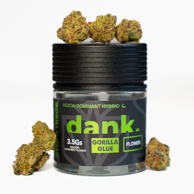 Gorilla Glue, also known as “Gorilla Glue #1” or "420 Glue" is an indica dominant hybrid (60% indica/40% sativa) strain created through crossing the classic Chocolate Diesel X Sour Diesel strains. This bud packs a crazy powerful high that leaves you feeling like your mind is filled with glue, all fueled by an insanely potent 25-28% average THC level. The high starts with a cerebral rush that leaves you feeling happy yet totally hazy, with no hope of focusing on anything any time soon. As your head high build and builds, your body will be washed over with a deep body buzz, leaving you feeling completely stoned and immovable. These effects last for hours on end and often end in a deep sleep for the lesser experienced.