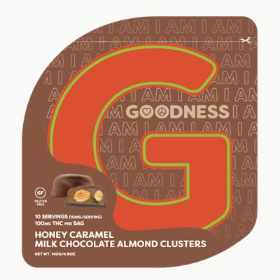Enjoy our DELICIOUS fresh-roasted and salted almonds covered in creamy honey caramel and coated with our Swiss recipe milk chocolate for inner GOODNESS in every bite. We make snacking fun, with 10mg of NYS Cannabis extract in each almond caramel cluster. We TRUST that you will have a wonderful EXPERIENCE while enJOYing our product. ALLERGY ALERT- CONTAINS: ALMONDS, MILK, SOY May contain trace amounts of peanuts due to shared processing equipment.