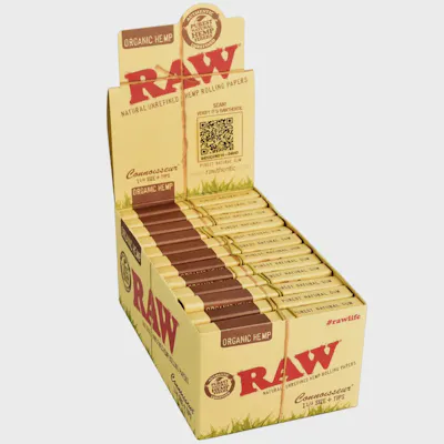 RAW Connoisseur Organic King Size Hemp Rolling Papers & Tips | 1 1/4 | 32pk