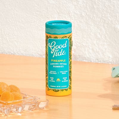 Feel the sand between your toes as you bite into a Good Tide pineapple gummy. Infused with the properties of sativa-dominant strains, these pineapple gummies produce an uplifting experience that begins with true tropical fruit flavor. The naturally occurring terpenes and minor cannabinoids present in our solventless hash rosin complement the real-fruit pineapple ingredients to form a perfect pairing. Feel the sun on your face with every bite!