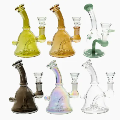 The Bell Glass Rig by Piranha has a unique shape that features a widened base and bell-shaped dome made of borosilicate glass. The design creates a pressure loop that keeps water flowing while efficiently diffusing hot smoke to enhance vaporization. It offers powerful filtration and smooth, clean rips, thanks to its disc percolator. Each piece comes with a bowl compatible with dry herb but can also work with a 14mm quartz banger to use this glass rig with concentrates. Please note colors may differ from images.
