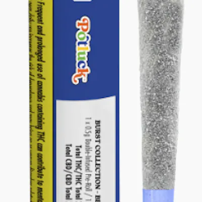 A juicy knockout from Potluck’s Burst Collection, Berry Cherry Burst is a double-infused pre-roll packed with sweet cherry and berry terpenes, THC isolate, and finished with a diamond coating for extra punch. Crafted with our proprietary dry-infusion technology, Potluck Burst Infused Pre-Rolls are the best burning infused pre-rolls with a slow, smooth, and clean burn and no clogs—just bold flavour and high potency.