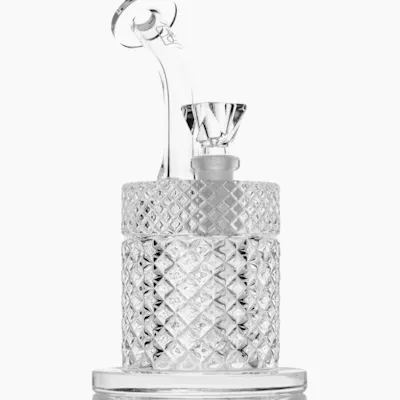 AVAILABLE ONLINE ONLY Looking at the Jane West Twenties Collection Bubbler it is clear that attention was paid to every detail. The solid, sturdy base and upright design simplify use for beginners and daily consumers alike. The piece comes with a signature, custom bowl, with a triangular design that maximizes your dry flower herb. Adaptable, the water pipe can also fit a banger for use with concentrates. Touch your lips to the ergonomic mouthpiece as the wide chamber fills with thick smoke and inhale to taste what you have been missing. Classic, unparalleled Jane West style combined with modern smokeware functionality make this piece the perfect nod to our Twenties. A removable downstem and custom bowl make keeping your piece clean simple and easy. Comes in crystal clear and several classic colors.