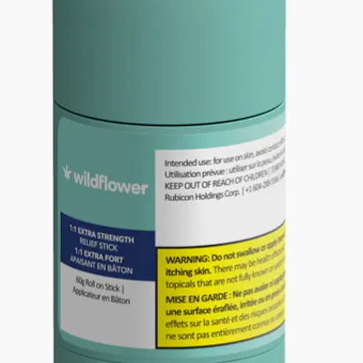 Wildflower Extra Strength 1:1 Relief Stick is their most potent topical. Featuring 500 mg CBD and 500 mg THC and blended with coconut oil, shea butter, and essential oils such as arnica and wintergreen. Arnica is a natural health product which contributes to the relief of pain and inflammation. The texture and stick applicator allow for easy and targeted application, while peppermint and eucalyptus result in Relief Stick’s signature lasting scent.
