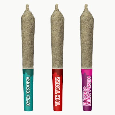 Enjoy the High Score Sativas Variety Pack, including Baja Breeze, The Monster, and The Twizz. This flavourful load-out includes 3 x 0.5g whole flower sativa pre-rolls infused with liquid THC diamonds, and rolled in kief for extra potency.