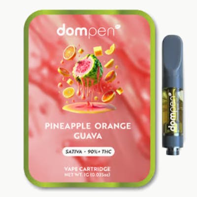 dompen cartridges contain a total of 1g of high-grade cannabis oil. dompen has established itself as a leader in the vaporizer category over the past decade, with growing sales across North America. With optimized airflow, clog-prevention technology, and a next-generation wick, our cartridge has been designed for performance. dompen is an easy way to consume cannabis on the go, without hassle. Pineapple Orange Guava Sativa blends ripe tropical fruit and citrus brightness for a smooth, uplifting high perfect for crisp fall days. All Classic strains test at 90%+ THC. Infused with flavorful terpenes to guarantee a discreet and consistent experience wherever, whenever. Weight: 1g