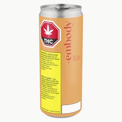 At embody, we are passionate about changing the conversation about wellness to thinking beyond what’s available and to look at what’s possible. We push the limits on wellness trends and bring unique CBD forward ideas to market. embody Peach + Ginger White Sparkling Tea combines the delicate flavours of fresh sweet peach with a touch of spicy ginger in a decaffeinated white tea with 40 mg of CBD and 2 mg of THC to produce a high quality and highly flavourful high CBD beverage.