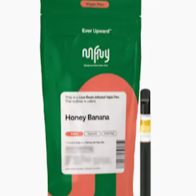 1st place winner of the "Best of New England" Competition in 2023; The MFNY live resin vape cart has a terpene-rich profile of our single-source, in-house produced Honey Banana real live resin. We start with fresh-frozen flower buds, then use the hydrocarbon extraction method (plus years of experience and scientific precision) to deliver the purest plant extract. An extract that showcases the strain's naturally produced full-spectrum cannabinoids and remarkable natural terpenes. The unmistakable banana aroma of Strawberry Banana is well balanced with sweet flavor of Honey Boo; known to promote emotional balance and uplifted mood with long-lasting, invigorating cerebral effects. No distillates, added flavors, or alterations.
