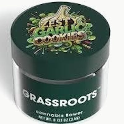 Bold, savory, and seriously potent — Zesty Garlic Cookies by Grassroots is an indica strain like no other. Grown under precise indoor conditions, this 3.5g premium flower offers a complex flavor profile and a deeply relaxing high that’s perfect for evening sessions or stress relief.True to its name, Zesty Garlic Cookies hits your senses with a rich blend of garlic, spice, and citrus zest, followed by a smooth, earthy finish. The effects are just as intense — heavy body relaxation, mental calm, and a soothing euphoria that melts away tension without knocking you out completely.Crafted for flavor chasers and indica lovers alike, this strain offers dense, frosty buds and a terpene-rich profile that makes every hit flavorful and satisfying.Why Choose Grassroots – Zesty Garlic Cookies 3.5g?Strain Type: Indica – deeply relaxing, calming, and mood-soothingCultivation: Indoor-grown – consistent, high-quality budsFlavor & Aroma: Garlic, spice, citrus zest, earthy finishEffects: Sedative, calming, euphoric, stress-relievingIdeal For: Evening use, winding down, or deep relaxationSize: 3.5g – a perfect eighth for solo use or sharingUnwind with flavor-forward potency — Zesty Garlic Cookies delivers a knockout combo of bold taste and soothing indica effects.Now available in 3.5g – premium indoor flower by Grassroots.