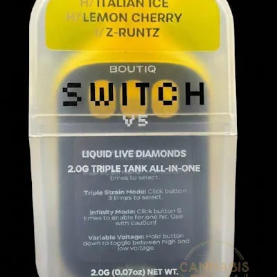 Boutiq – Italian Ice / Lemon Cherry / Z-Runtz – Triple Tank Switch – 2g Liquid Diamonds Disposable (Hybrid-Hybrid-Indica)Discover layered flavor and balanced effects with the Boutiq Triple Tank Switch 2g Liquid Diamonds Disposable, featuring a curated blend of Italian Ice, Lemon Cherry, and Z-Runtz. This hybrid-forward lineup transitions smoothly into indica depth, giving you flexibility from uplifting vibes to full-body relaxation—all in one sleek, switchable device.Powered by high-potency liquid diamonds, each tank delivers bold terpene flavor, smooth vapor production, and consistent performance. With the built-in switch technology, you can easily rotate between strains depending on your mood—no swapping devices needed.