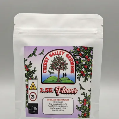 Experience premium craft cannabis with Cherry Valley Growers – Daywrecker (I-95 x Strawnana) – 3.5g, now available at Cannabis Realm of NY. This expertly cultivated indoor flower combines the potent genetics of I-95 and Strawnana, delivering a flavorful, terpene-rich experience in a convenient eighth.Premium Indoor FlowerGrown with precision in a controlled indoor environment, this strain is carefully cultivated to maximize potency, terpene expression, and visual appeal. The buds are dense, resin-rich, and expertly cured to preserve freshness, aroma, and overall quality.Daywrecker (I-95 x Strawnana) Flavor & AromaThis unique hybrid cross offers a bold and complex terpene profile that blends fruity sweetness with gassy intensity. Expect a smooth and flavorful smoke with notes of:Sweet strawberry and tropical fruitCreamy banana undertonesPungent diesel and gas notesSubtle earthy and herbal finishThe combination of I-95 and Strawnana creates a well-balanced flavor that is both sweet and fuel-forward.Effects & ExperienceDaywrecker is known for its powerful and dynamic effects, combining uplifting cerebral stimulation with relaxing body sensations. Consumers often report:A fast-acting euphoric head highIncreased focus and mental clarityBoosted mood and energySmooth body relaxation without heavy sedationIts balanced profile makes it suitable for both daytime productivity and social enjoyment.Convenient 3.5g FormatThis 3.5g (eighth) package is perfect for trying out a new strain or enjoying high-quality flower in a manageable size. Ideal for rolling, packing bowls, or vaporizing.Why Choose Cherry Valley Growers – Daywrecker (I-95 x Strawnana) – 3.5g?Premium indoor-grown cannabis flowerUnique I-95 x Strawnana geneticsSweet, fruity, and gassy terpene profileBalanced hybrid effectsConvenient 3.5g size for versatilityAt Cannabis Realm of NY, we offer top-tier cannabis flower selected for quality, flavor, and consistency. Cherry Valley Growers Daywrecker (I-95 x Strawnana) 3.5g is an excellent choice for consumers seeking a flavorful, potent, and well-balanced hybrid strain.