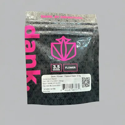 Tropical, bright, and energizing, Dank Papaya Haze Indoor Flower delivers premium quality in a flavorful 3.5G eighth. Cultivated indoors for enhanced terpene preservation and dense, resin-rich buds, this strain offers smooth smoke, vibrant aroma, and consistent potency.Papaya Haze features a lively terpene profile with notes of ripe papaya, sweet citrus, tropical fruit, and subtle floral haze. The aroma is fruity and refreshing, while each inhale delivers a juicy, slightly tangy flavor with a smooth herbal finish.Effects are uplifting and mentally stimulating, starting with a clear-headed cerebral rush that boosts mood, focus, and creativity. A light body relaxation follows, keeping the experience balanced and functional without heaviness. Ideal for daytime sessions, creative projects, or social gatherings.Highlights:Product: Indoor FlowerWeight: 3.5G (Eighth)Strain: Papaya Haze (Sativa-dominant Hybrid)Flavor Profile: Papaya, citrus, tropical fruit, floral hazeEffects: Energizing, euphoric, mentally stimulatingIdeal for: Daytime use, creativity, social settingsDank Papaya Haze 3.5G Indoor Flower delivers tropical sweetness, smooth smoke, and bright, mood-boosting effects in a premium indoor-grown eighth.