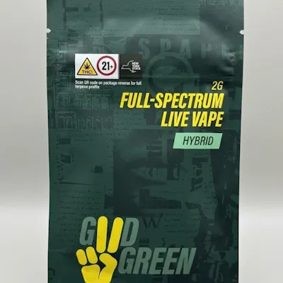 Good Green – Bananaconda – Live Resin Disposable Vape – 2g | HybridGood Green – Bananaconda Live Resin Disposable Vape (2g) delivers a potent, full-spectrum vaping experience crafted for experienced consumers. Made with live resin, this disposable preserves the plant’s natural terpene and cannabinoid profile, offering enhanced flavor, aroma, and a more complete effect.Bananaconda is a hybrid strain known for its bold, fruit-forward profile, featuring ripe banana sweetness layered with tropical notes and a subtle earthy-gas finish. The live resin extraction captures these flavors with depth and clarity, producing smooth, terpene-rich vapor with every draw.Expect a balanced, long-lasting high that starts with a euphoric, heady lift and settles into a relaxed, calming body effect without becoming overly heavy. The 2g format provides extended use, making it ideal for frequent vape users who want both performance and flavor consistency.This disposable is ready to use out of the box, offering convenience without compromising quality—no refilling required, just smooth, reliable hits throughout.Product Highlights:2g live resin disposable vapeHybrid strain: BananacondaFull-spectrum extract with rich terpene profileSmooth, consistent vapor with strong flavorReady-to-use, no setup neededEffects: Euphoric, relaxed, balanced, long-lastingFlavor & Aroma: Banana, tropical fruit, earthy, light gas