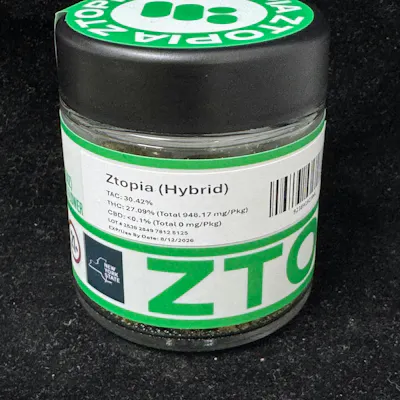 High Mart Ztopia delivers a vibrant, fruit-forward experience with balanced effects that make it a versatile choice for many occasions. This hybrid flower showcases dense, aromatic buds with a terpene profile that highlights sweet tropical fruit, citrus, and light berry notes paired with subtle earthy and herbal undertones — giving each session a flavorful and inviting character.Flavor & Aroma:Sweet tropical and citrus fruitBerry highlightsLight herbal earthinessEffects:Ztopia offers a smooth, well-rounded hybrid high. Expect an initial uplift that can enhance mood, creativity, and focus, followed by gentle body ease that helps you unwind without feeling overly sedated. It’s ideal for relaxed afternoons, social hangs, or creative sessions where you want clarity paired with calm.Product Highlights:Strain Type: HybridWeight: 3.5 gFlavor & Aroma: Tropical fruit, citrus, sweet berry, herbal earthEffects: Balanced, uplifting, mellow relaxation