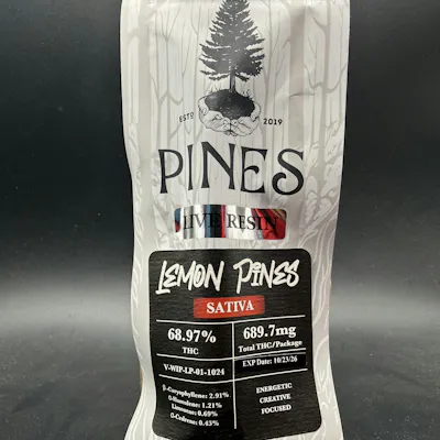 Pines – Lemon PinesLive Resin Disposable Vape – 1g | SativaRefresh your senses with Pines Lemon Pines Live Resin Disposable Vape, a premium 1g sativa crafted from fresh-frozen cannabis to preserve vibrant terpenes and full-spectrum potency. This ready-to-use disposable delivers smooth, flavorful hits with true-to-flower effects in a sleek, convenient format.Lemon Pines features a crisp terpene profile bursting with zesty lemon, fresh pine, and subtle herbal citrus, creating a clean, energizing flavor with every inhale. The live resin extraction captures the plant’s natural aroma and cannabinoids, offering a more authentic and terpene-rich vaping experience compared to standard distillate.The effects are uplifting, clear-headed, and motivating, making this an ideal choice for daytime use, creative sessions, social activities, or staying productive without heavy sedation.