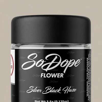 So Dope – Silver Black Haze – 3.5G SativaVibrant, uplifting, and terpene-rich, So Dope Silver Black Haze is a premium 3.5-gram sativa flower known for its energizing effects and bold aromatic profile. Carefully cultivated to highlight its classic haze characteristics, this strain delivers a smooth, flavorful smoke and a lively daytime experience.Silver Black Haze features a dynamic terpene profile with notes of bright citrus, sweet herbs, earthy spice, and subtle floral undertones. The inhale is crisp and zesty with citrus-forward flavor, while the exhale leaves a smooth herbal finish.The effects are energizing and clear-headed, beginning with a fast-acting cerebral uplift that boosts mood, focus, and creativity. Its stimulating sativa profile makes it an excellent choice for daytime sessions, social settings, or creative activities.Highlights:Product: Whole FlowerBrand: So DopeSize: 3.5G (Eighth)Strain: Silver Black HazeType: SativaFlavor Profile: Citrus, herbal sweetness, earthy spice, floral notesEffects: Energizing, uplifting, focusedIdeal for: Daytime use, creative work, social sessionsSo Dope Silver Black Haze 3.5G delivers classic haze flavor, smooth smoke, and bright sativa energy in a premium eighth of flower.