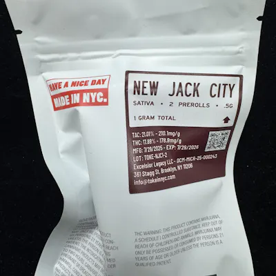 Ignite your day with TOKE.iN – New Jack City – 2pk Pre-Roll – 0.5g, a vibrant sativa strain known for its uplifting and creative high. Each pre-roll packs smooth, citrus-forward flavor with a touch of sweetness, perfect for boosting focus and energy.Product Highlights:Strain Type: SativaFormat: 2 Pre-Rolls – 0.5g eachFlavor & Aroma: Citrus, sweet, and herbalEffects: Energizing, euphoric, and mood-enhancingStay sharp and inspired with TOKE.iN – New Jack City – 2pk Pre-Roll – 0.5g, available now at Cannabis Realm of NY.