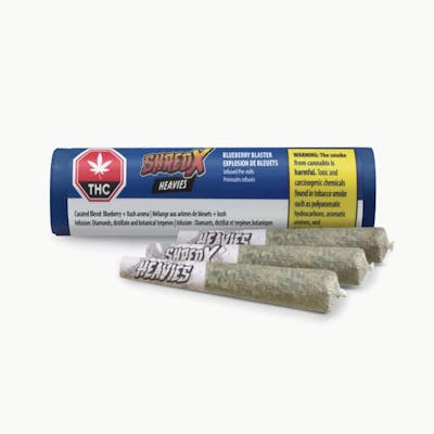 Get ready to get blasted, blueberry style, with our new SHRED-X Heavies. These Blueberry Blaster infused pre-rolls deliver an aromatic and smooth blueberry and kush burn experience, and with the added distillate and pure THCa crystals, they are definitely NOT for lightweights. Boasting an ultra-heavy +40% THC, in a single doob tube, this trio of 0.5g infused pre-rolls are ideal for sharing or getting heavy all by yourself.