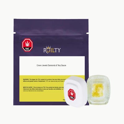 Roilty Crown Jewels Diamonds & Terp Sauce (75-90% THC) is 1G of light, full spectrum crystalline concentrate. Named after its brilliance and high potency, Crown Jewels offers unique small batches, incorporating varying flavours and terpene profiles from batch to batch. Meaning each batch is it's own shining jewel.