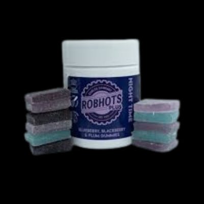 Unwind and relax with ROBHOTS Plus Night Time Gummies infused with melatonin. Crafted for recreational users seeking indica and a restful sleep, these gummies contain 100mg of THC, 200mg of CBN, and 30mg of melatonin. Enjoy the soothing flavors of Blueberry, Blackberry, and Plum while drifting into a peaceful slumber with ROBHOTS Plus.