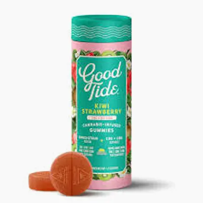 Lean into relaxation and recovery with Good Tide Kiwi Strawberry THC:CBD:CBG gummies. Hybrid single-strain rosin along with an extra boost of CBG are wrapped up with juicy kiwi strawberry flavors to help you fully reset.
