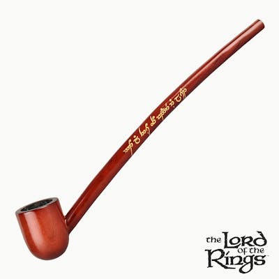 This churchwarden style pipe is made from quality cherry wood, and the stem is decorated with the iconic quote in Elvish, “Not all those who wander are lost.” These pipes measure 9 inches (22.9cm) long and include their own poking & tamping tool, bowl screens, & pipe cleaners. Each The Lord of the Rings Shire Pipe comes packaged in an official collector’s gift box.