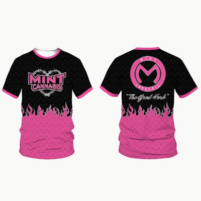 Mint Cannabis - Sublimation Tshirt - Pink Flames (Black/Pink) - L
