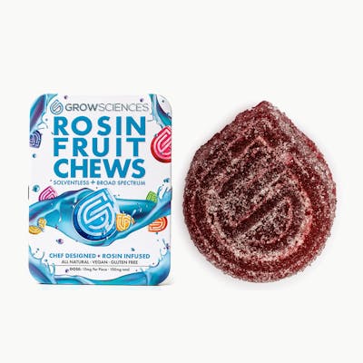 Most edibles in the marketplace are infused with distillate, utilizing a solvent extraction that only includes Delta 9 THC. Our rosin edible uses ice water hash, preserving and infusing the plants broad spectrum of therapeutic and psychoactive compounds. These gourmet fruit chews are hand made by our in house Chef and intelligently infused with our own solventless rosin using nano technology. Each batch is served in a 100mg tin, cut into 10, 10mg pieces. FEEL THE DIFFERENCE. Made 100% In house. Our Flower. Our Extracts. Our Team. Download our app or check out our Drops page to stay up to date on where your favorite products will land next. https://growsciences.com/app