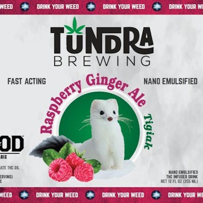 Raspberry Ginger Ale, represented on the label by the Ermine, (Tigiak in Iñupiaq), is an extremely refreshing twist on a classic ginger ale. This carbonated RTD beverage is best consumed chilled in a glass with ice. It comes packaged in a 355mL/12oz size amber bottle capped with a pry off gold crown with 10 - 10 mg servings, total 100 mg THC each.
