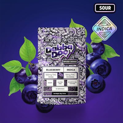 100mg Sour Blueberry infused gummies by Dabba Doo. Sativa.