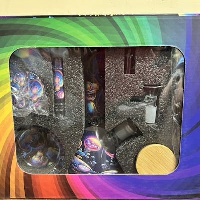 8" Decal beaker water pipe starter kit. Comes in various designs.
