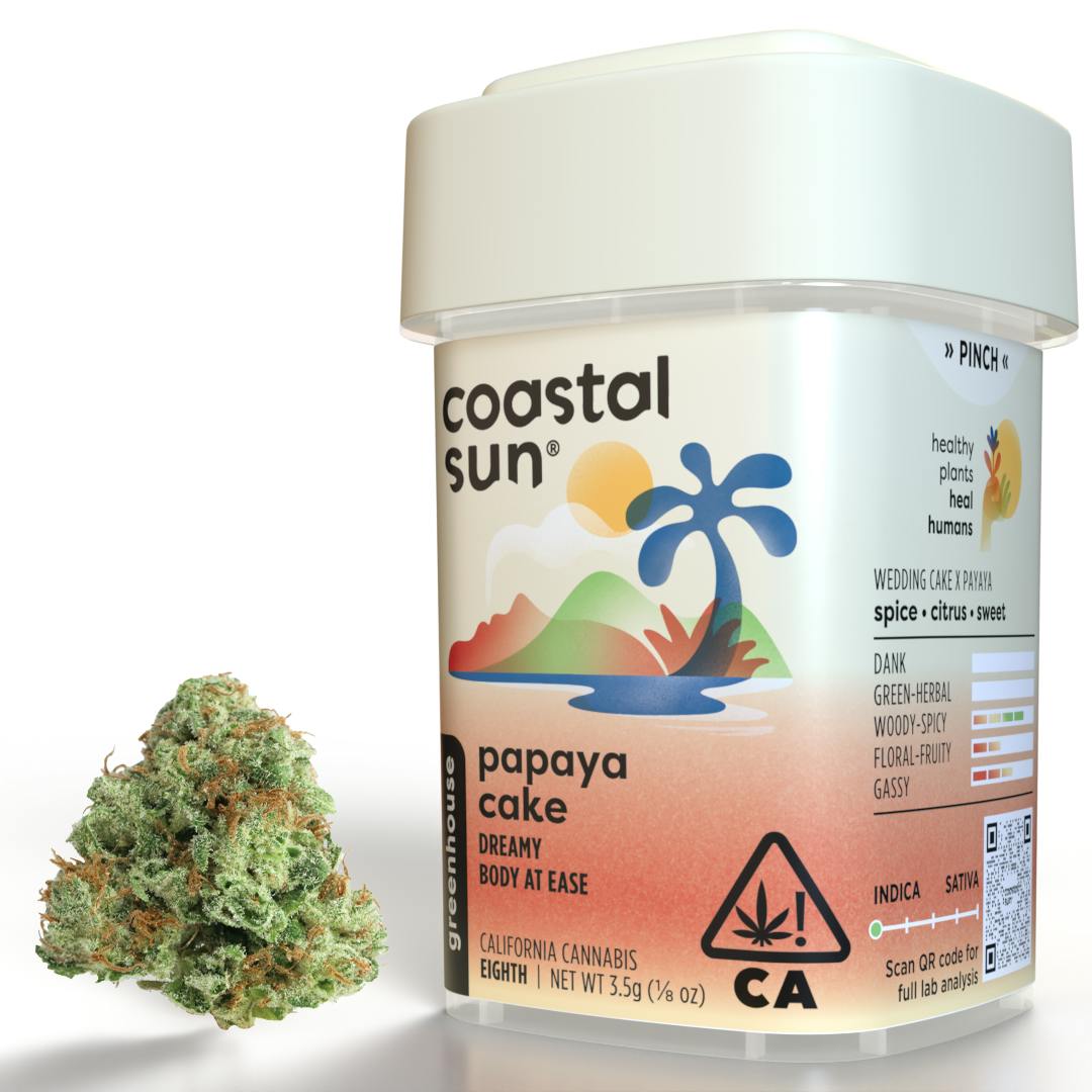 Papaya Cake is a potent experience with a genetic lineage of Wedding Cake and Papaya. Its flavor profile is spicy, sweet, citrusy, and creamy with grape, vanilla, and mango notes. Enjoying this cultivar might transport you into a state of dreamy euphoria, leaving you cozy and relaxed, ready to snuggle into bed.