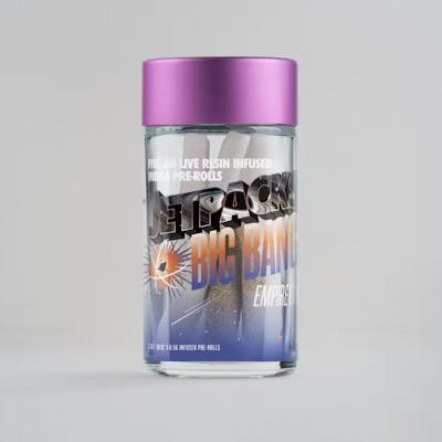 The Jetpacks Big Bang Mini Infused Pre-Roll in Empire OG (Indica) offers a potent and relaxing experience in a compact .5g size. This indica strain is known for its deeply soothing effects, making it perfect for unwinding at the end of the day or when you need to de-stress. The Empire OG features earthy, pine-like flavors and is infused with live resin, cannabis oil, high THCa extract, and encrusted with diamonds for enhanced potency.