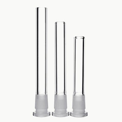 Glass Accessories for Water Pipes These clear downstems are traditional open-ended tubes that connect your bowl and/or banger to your water pipe and/or dab rig. They are very easy to use and clean due to their simplistic design. They have an outer joint diameter of 19mm and will support 14mm bowls. These downstems are available in 3½", 3¾", and 4" lengths. Downstem Features: Size: 14mm Made from heat resistant borosilicate glass Fits 19mm female joints Ring on the side for easy handling