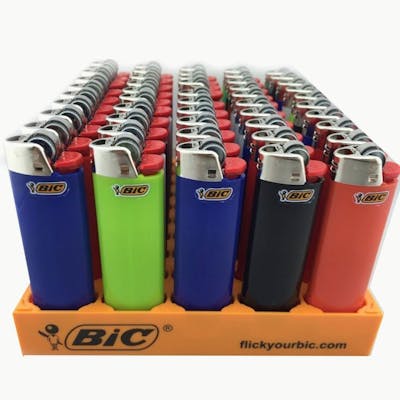 The BIC Classic lighter is America's #1 lighter. Each 50 count tray features an assortment of trendy colours that appeal to both male and female consumers. Up to 3,000 lights per lighter provides a great consumer value. Each BIC Lighter is child-resistant, safe and reliable and 100% Quality Inspected. BIC Lighters give you up to 2 times the light vs. the next full size leading brand. Every BIC lighter undergoes more than 50 separate, automatic quality checks during the manufacturing process.