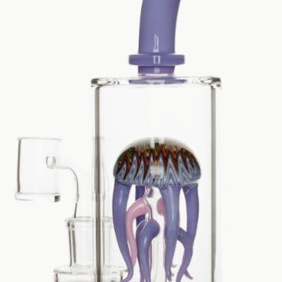 Electrify your sesh with the Jellyfish Concentrate Rig from Red Eye GlassĀ®. This borosilicate bad boy of the ocean blue includes a comfortably angled mouthpiece and a UFO perc to take the sting out of your vapour. Deep dive into one today!