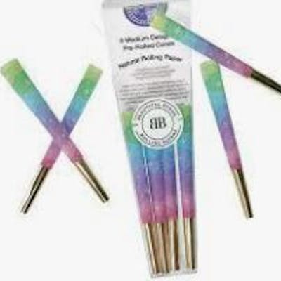 Unicorn Dreams designer pre-rolled cones from Beautiful Burns are made from ultra thin, slow burning natural eco-friendly palm pulp rolling paper that comes from the husk of the palm fruit. Each package of Beautiful Burns pre-rolls contains 8, 98mm long cones. In order to minimize packaging waste, cones are packaged with 4 cones nested inside 4 other cones.