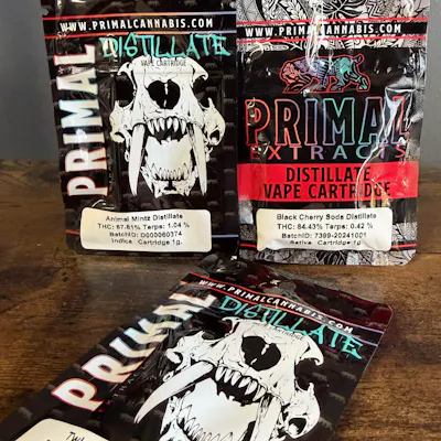 Cannabis distillate is super concentrated cannabis oil. While other concentrates are extracted using solvents or heat, distillate undergoes a short-path distillation process that strips it of any terpenes, waxes, flavonoids, extra cannabinoids, impurities, or other plant matter. What is left behind is a unique cannabis oil that can reach astounding purity levels of over 99% THC or CBD. Unlike with other concentrates like wax or shatter, you can always rest assured that your Primal Cannabis distillate is clean and free of residual solvents. In its purest form (right after extraction), distillate oil is flavorless and odorless. But this doesn’t exactly make for a great vaping experience. So Primal Cannabis distillates are infused with extra terpenes for flavor.