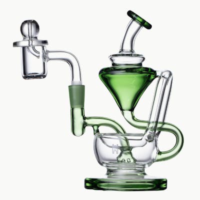 Recycler 1A Dab Rig offers smooth, efficient function with its double uptake recycler and built-in oil catch for cleaner sessions. Handmade from 100% borosilicate glass, this compact yet durable piece is designed for purity and performance.