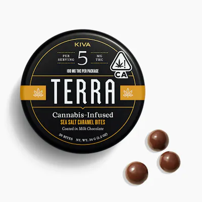 Sea Salt Caramel Terra Bites boast delicious, rich, and smooth caramel centers coated in creamy, hash-infused milk chocolate and sprinkled with Pacific sea salt. These bites have a sweet, buttery flavor that finishes with a salty kick.