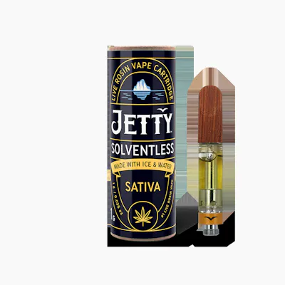 Fresh-squeezed Lemon Tree energy with a Gelato #41 cookie-vanilla finish. It hits bright and heady, then settles into that floaty, talkative glow that makes errands feel optional and conversations feel easy. Jetty Solventless is the most-awarded vape since 2020. It is the cleanest oil available, made from cold water hash that’s extracted using only ice and water. Our unique filtration process removes excess fats and waxes increasing purity (and THC %) while keeping all the tasty terpenes. The result: a light, golden oil. Look for the Jetty signature wood tip and our premium cartridges which work with any 510-thread battery.