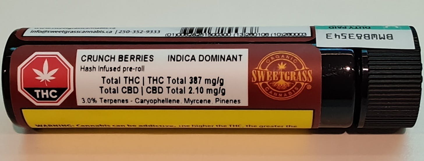 Sweetgrass Organic Cannabis - Organic Crunch Berries Hash Infused Pre Roll 1g