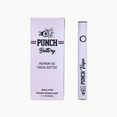 Punch Extracts – 510 Thread Battery is a sleek, reliable vape battery designed to pair perfectly with standard 510-thread cartridges. Built for portability and ease of use, it offers consistent power output, smooth draws, and long-lasting performance. Compact and discreet, this battery ensures you get the most out of your Punch Extracts carts or any compatible 510 cartridge.