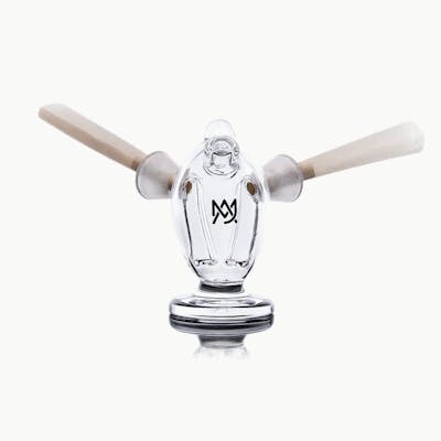 The Dubbler takes the original MartianĀ® Bubbler concept to another galaxy! The Dubbler is double the rip, twice the pull and a truly out of this world experience. This blunt bubbler fits perfectly with most cones and rolled products and adds water filtration to your smoke to deliver smoother, cooler, and more enjoyable draws. Two frosted tip connections make for the most secure connections possible. The Dubbler features a pendant hook for accessorizing or convenient transportation. Its spill-resistant design ensures a smooth, mess-free session. An ergonomically placed carb hole supports a natural grip with dual-functionality as both a standard and directional airflow carb cap. Material: 100% Borosilicate Glass Dimensions: 2.25in x 2in x 1.25in